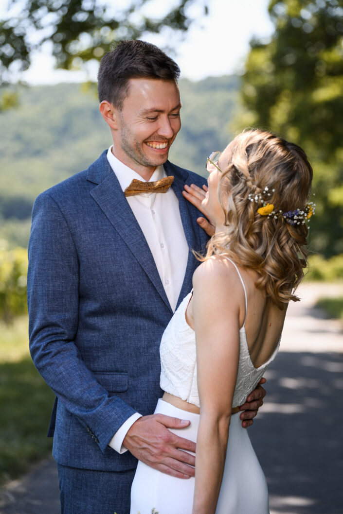 Im Juni durfte ich Carmen und Patrick an ihrem besonderen Tag begleiten. Schon das Brautpaarshooting in den Weinbergen war ein Highlight – ruhig, vertraut und mit einem wunderschönen First-Look-Moment inmitten der Natur.